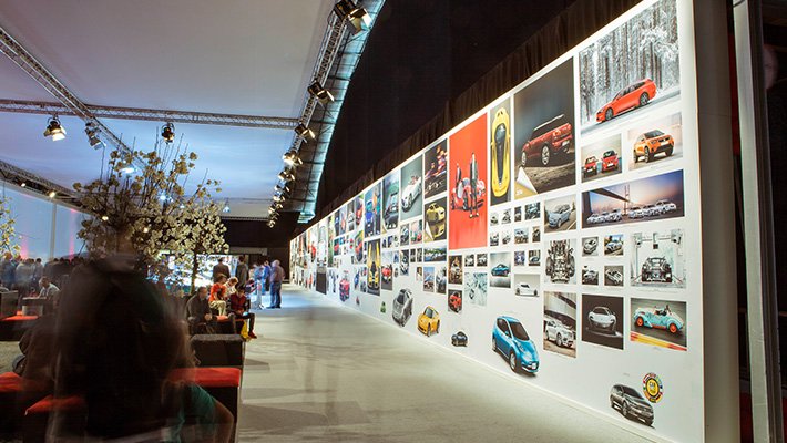 Negenenveertig automerken. Negentig primeurs. Vijfhonderd auto’s. Duizenden vierkante meters. Van 17 t/m 26 april 2015 stond de AutoRAI weer op de agenda, het grootste auto-evenement van Nederland. In opdracht van Kubik, die voor de AutoRAI het nieuwe concept ontwikkelde en verantwoordelijk was voor de totale realisatie, werd M2 Printing de aanbesteding gegund voor de productie van het printwerk voor de AutoRAI 2015. Gezien de grootte van het project (14.000 m2 printwerk), de enorme tijdsdruk én de kennis en ervaring van M2 Printing in zulke grote projecten, is het grootformaat printbedrijf een eenmalige samenwerking aangegaan met Exposize.