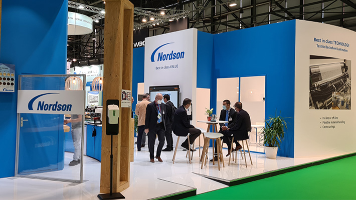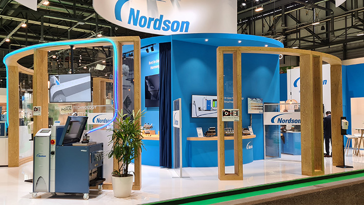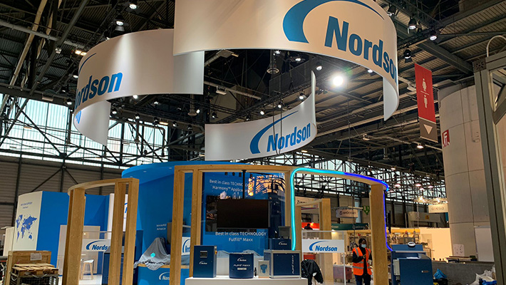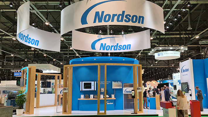 In opdracht van standbouwbedrijf Brandt & Fernhout heeft M2 Printing de full colour visuals voor de beursstand van Nordson geproduceerd en geleverd. Ook de eyecatchers boven de stand werden door M2 Printing verzorgd.