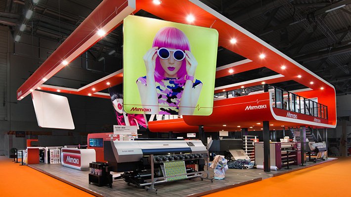 Standbouwer Kop Expo bedacht voor Mimaki een modulaire stand, die voor diverse afmetingen en beursvoorschriften flexibel inzetbaar is. De stand van totaal 270 m2 kreeg lovende reacties op de Viscom en de FESPA.