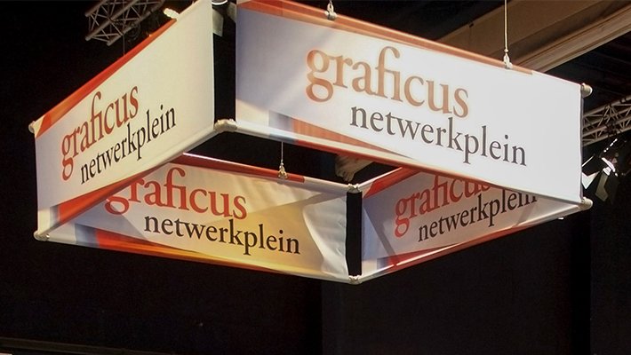monteren we de doeken. Na de beurs verzorgen we de demontage. Zo heeft de organisatie van de beurs geen omkijken meer naar het printwerk. Hierin worden ze volledig ontzorgd.”